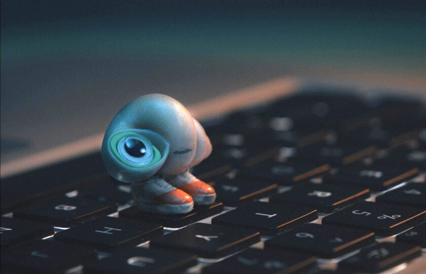 In “Marcel the Shell with Shoes On,” Marcel watches as he becomes an internet sensation. (Courtesy of A24) |